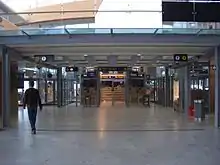 The east pier of the original terminal is for international flights. The gates for Schengen area flights are E-gates while the F-gates for the non-Schengen area are at the easternmost end of the terminal.[50] An expansion to the non-Schengen end of the east pier was opened during the summer of 2022.[51] Four gates near the end of the east pier are flexigates where doors can be opened or closed to switch between Schengen and non-Schengen flights.[52] EU controllers have been somewhat sceptical of the Schengen/non-Schengen flexigates, and there were a few incidents where the wrong doors were opened so that passengers who should have gone through the border control did not.[53]
