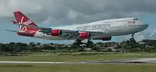 Grantley Adams International Airport, as it is known today, handles most large aircraft including Boeing 747s. The airport was one of a handful of destinations where British Airways' Concorde aircraft made regularly scheduled flights (and got repairs). The flight time of Concorde from the United Kingdom to Barbados was less than 4 hours.[15] The first Concorde visit to Barbados was in 1977 for the Queen's Silver Jubilee. During the 1980s, Concorde returned for commercial flights to Barbados and thereafter flew to Barbados during the busy winter season. On 17 October 2011, ZA006, a Boeing 787 Dreamliner arrived at BGI for testing. This was followed by a 24 October arrival of the Boeing 747-8 for further high humidity environment testing.