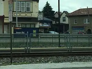 Avon Road station (formerly Bywood[1]) is a SEPTA Media-Sharon Hill Trolley Lines station in Upper Darby, Pennsylvania, United States. It is officially located at Garrett Road & Avon Road, but Bywood Avenue is also included as it parallels the north side of the line. The station serves both Routes 101 and 102, and only local service is provided on both lines. The station contains two platforms with plexiglass bus-type shelters on both sides of the tracks, both of which are at the far end of each platform. A former P&W-era shelter exists across the tracks from the westbound platform, but it is completely closed and boarded up. This was formerly the inbound platform before the newer inbound platform was moved to the far side after the Avon Road grade crossing.