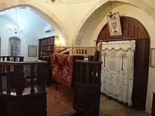 The Abraham Avinu Synagogue (Hebrew: בית הכנסת על שם אברהם אבינו) is a synagogue in the Jewish Quarter of Hebron.[1] Built by Hakham Malkiel Ashkenazi in 1540,[2] its domed structure represented the physical center of the Jewish Quarter of the Old City of Hebron. The synagogue became the spiritual hub of the Jewish community there and a major center for the study of Kabbalah.[2] It was restored in 1738 and enlarged in 1864; the synagogue stood empty since the 1929 Hebron massacre,[3] was destroyed after 1948,[4] was rebuilt in 1977 and has been open ever since.[5]