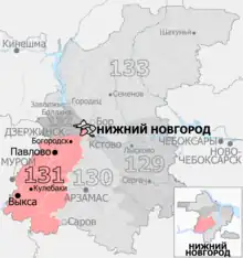 The Avtozavodsky constituency (No.131[lower-alpha 1]) is a Russian legislative constituency in Nizhny Novgorod Oblast. Until 2007 the constituency covered Avtozavodsky, Leninsky and Sovetsky City Districts of Nizhny Novgorod. In 2016 Avtozavodsky constituency only retained Avtozavodsky City District but it took Pavlovo from former Dzerzhinsk constituency and Vyksa from former Arzamas constituency.