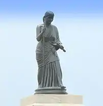 Avvaiyar (Tamil: ஔவையார்) was a Tamil poet who lived during the Sangam period and is said to have had cordial relations with the Tamil chieftains Vēl Pāri and Athiyamān. She wrote 59 poems in the Puṟanāṉūṟu.[1] A plaque on a statue of the poet in Chennai suggests the first century BCE for her birthdate.[2][3] The name Avvaiyar means a 'respectable good woman', hence a generic title; her personal name is not known.[4]