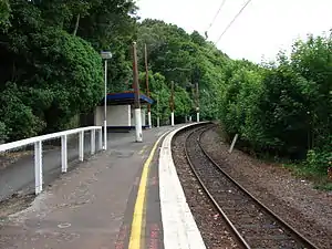 Awarua Street railway station is one of eight stations on the Johnsonville Branch, a branch railway north of Wellington in New Zealand’s North Island, and serves the suburb of Ngaio. It is one of two stations that were added to the line when it was upgraded prior to being reopened as the Johnsonville Branch. It is one of four stations on the line located on a curve; before arrival at the Crofton Downs or Awarua Street stations, the onboard announcement adds Please mind the gap when exiting the train.