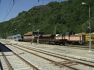 Ax-les-Thermes station (French: Gare d'Ax-les-Thermes) is a railway station in Ax-les-Thermes, Occitanie, France. The station is on the Portet-Saint-Simon–Puigcerdà railway. The station is served by TER (local) and Intercités de Nuit (night trains) services operated by the SNCF.