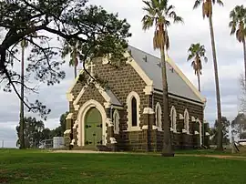 Axedale St Andrew's Uniting Church is located in the main street of Axedale. This church began construction on the 30th of September 1868 when foundation stone was laid and later opened in 1869. This church is still open and is used twice a month by a congregation of local families and is ministered by Rev Di Esbensen who also ministers St Andrew's Bendigo and St Andrews's Forest Street. She alternates between leading worship. St Andrew's Axedale is led by her in the first and third weeks of the month.[6]