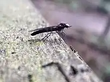 The Axymyiidae have the general appearance of the Bibionidae. Unlike bibionids, axymyiids have four branches of the radial vein, Bibionidae have two or three.