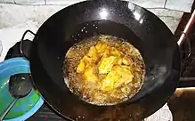 | Main ingredients | Chicken, turmeric, garlic, shallots and other spices deep fried in coconut oil |