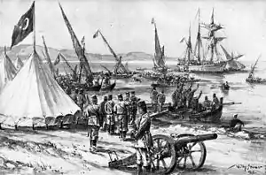 The British personnel of the radio station provided Mücke with food to take on the ship. The Ayesha was in bad shape, with the seals of the seacocks having been removed, and the bilge pumps not working properly, it was constantly taking on water. The wood of this confiscated sailing ship was very rotten and leaking. The four drinking water tanks could not be cleaned, and the water in three of them was contaminated. The hold was loaded with 2,000 rounds of ammunition, 29 Mauser model 88 and 98 rifles, each with 60 rounds and 24 pistols.[1] Thus equipped, the crew escaped being captured by HMAS Sydney. Despite these shortcomings, the Ayesha reached Padang on the west coast of Sumatra on 27 November. Since this was a Dutch port, and due to neutrality provisions, the Ayesha had to leave within 24 hours, since she was now a vessel of the German Imperial Navy.