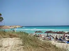 The resort has 27 beaches, of which 14 have been awarded the Blue Flag award, more than any other resort in Cyprus; the island itself also has the second highest amount of Blue Flags in the world, behind only Croatia.[41][42] In 2011, Nissi Beach topped the TripAdvisor list of the best beaches in Europe.[43] In 2017, Makronissos Beach was chosen by Travel Weekly as the third best beach for Cyprus and Greece.[44] In 2018, it was announced that Nissi Beach ranked third in the list of the most popular beaches on Instagram.[45][46] A CNN feature ranked Nissi Beach as the best beach to visit for the month of July 2018.[47]