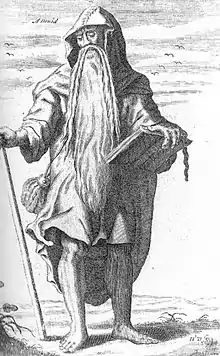 While the specific historical theories brought forward by Sammes were discounted by his contemporaries, his book was a contribution to a number of debates of the time, and its effect on iconography was major. The representations of Celtic druids had been developed from beginnings in Conrad Celtes and the Jani Anglorum (1610) of John Selden. Inigo Jones had made a druid stage design (1638) for Lodowick Carlell's The Passionate Lovers, drawing on earlier pageant representations of Ancient Britons, as a Wild Man. Further iconographic sources drawn upon were of the Green Man and hermits. As represented in Britannia Antiqua Illustrata the druid is a composite of "wild" and "holy".[5] John Wood, the Elder was prepared to take Sammes seriously, in theorising about Stonehenge.[6]