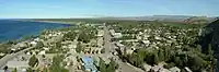 The easternmost parts of the region have a cold steppe climate.[10][11] Precipitation is significantly lower than the other parts of the region with mean monthly precipitation below 40 mm (1.6 in).[10][11] Precipitation is concentrated from May to August where these months are responsible for 55% to 65% of the total annual precipitation.[10][11] Snowfall can occur during these months owing to colder temperatures.[10][11] Mean annual precipitation ranges from 300 mm (12 in) in Chile Chico to 612 mm (24.1 in) in Balmaceda.[10] Mean temperatures are lower than areas to the east, averaging between 6 and 8 °C (42.8 and 46.4 °F).[10] Mean summer temperatures can exceed 15 °C (59.0 °F) in Chile Chico, which permits agriculture, similar to the one in the central parts of the country.[10] This is due to the moderating influence of General Carrera Lake which prevents temperatures from dropping too low.[10][11] The vegetation is mostly shrubs owing to the low temperatures and precipitation.[10][11] Relative humidity is lower, with mean annual values varying between 62% and 71%.[10][11]