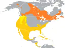 | Range of A. collaris Breeding range Year-round range Wintering range | |