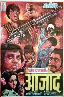 Azaad is a 1978 Bollywood action thriller film directed by Pramod Chakravorty. The film stars Dharmendra, Hema Malini, Ajit and Prem Chopra.[1]