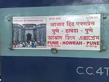 Azad Hind Express is an express train of Central Railway of Indian Railways linking Pune with Howrah. It is one of the fastest trains in its route with high priority. It covers a distance of 2,015 kilometers at an average speed of 60 km/h.