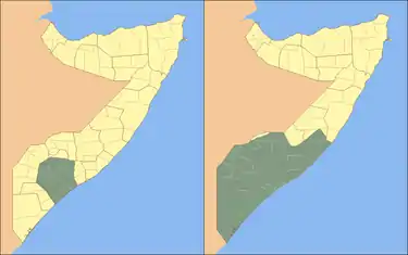 | Largest city | Dhobley, Jamame, Kismayo | ||||||||