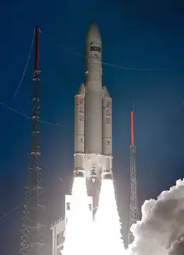 On February 8, 2013, Azerbaijan launched its first artificial satellite, Azerspace-1.[19] The flight from Kourou Cosmodrome in French Guiana took place between 01:36 and 02:20 at night.[19] The satellite is named Azerspace-1/Africasat-1a because its coverage includes Central Asia, Europe and Africa.[19] 230 million Azerbaijani manats were spent to create the satellite.[19] 15 percent of this amount was paid from the state budget, the rest with loans. Loans in the amount of 98 million US dollars were taken from France's COFACE Export Credit Agency and 116.6 million US dollars from BNP Paribas bank with the guarantee of US Export-Import Bank (US Em-Im).[20]
