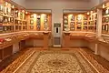 The second hall features medieval surgical instruments, copies of separate medical records of 13th to 19th centuries which the original ones are kept in the Manuscripts Institute. Portraits, diplomas, monographs, and dissertations of the first Azerbaijani doctors studied in the European and Russian universities in the 19th century, Abdulkhalik Akhundov, the organizer of the first free medical treatment in Baku Mammadrza Vakilov, the first sanitary doctor Mustafa Sharifov, Bahram Akhundov, Karimbey Mehmandarov, Ibrahim Rahimov, are displayed in this hall. There is also a corner dedicated to the scientist, professor of Kazan (Volga region) Federal University Mirza Kazim Bey, who enriched nerve and cardiology fields with scientific experiments.[2]