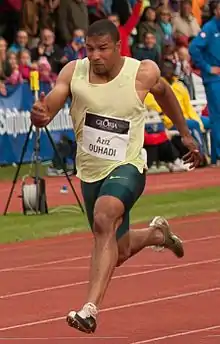 Aziz Ouhadi (Arabic: عزيز أوحادي; born 24 July 1984 in Khemisset) is a Moroccan track and field athlete who competes in the 100 metres and 200 metres. His 100 m personal best of 10.09 seconds is the Moroccan national record. He was part of the Morocco team for the 2012 London Olympics.[1] He represented his country at the 2009 and 2011 World Championships and 2012 World Indoor Championships and has won medals at the Jeux de la Francophonie and the Military World Games.