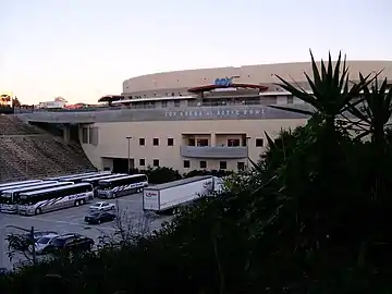 Aztec Bowl was listed on the National Register of Historic Places:[8] The old concrete bleachers of the football stadium were not demolished when the new arena was built. John F. Kennedy, then the President of the United States of America, gave the graduation commencement address at San Diego State University on June 6, 1963.[9][10][11][12]