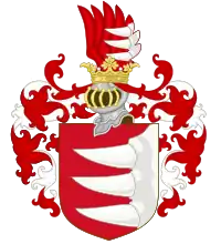 The elder branch of the family, the Báthory of Somlyó were descended from John, Count of Szatmár, the first-born son of Briccius, through his eldest son Ladislaus (died 1373). Ladislaus, Count of Szabolcs, married Anna Meggyesi and received Somlyó as dowry.[6] Ladislaus' younger brother George II is the ancestor of the Simolin family, later called Báthory of Simolin (see below).[7] A further division occurred under the great-grandsons of Ladislaus (latter half of the 15th century): John and Stephen dropped the name Báthory and founded the Szaniszlófi family, while Nikolaus continued the Somlyó branch.[4]