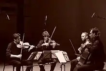 They were united by their desire both to champion the contemporary repertoire : George Crumb, György Ligeti, Giacinto Scelsi, John Cage, György Kurtág, Helmut Lachenmann, Kaija Saariaho, Béla Bartók, Steve Reich, Raphaël Cendo, Marco Stroppa, and Henri Dutilleux. Several string quartets and other chamber works have been written for the ensemble by Jean-Pierre Drouet, Garth Knox, Karl Naegelen, Alvaro Leòn Martinez, Frédéric Aurier, Daniel D'Adamo, Thierry Blondeau, Jérôme Combier, Philippe Leroux, and Francesco Filidei.