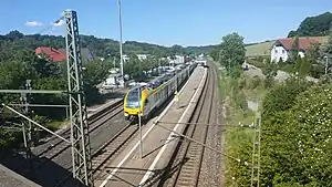 Böbingen (Rems) station is a railway station in the municipality of Böbingen an der Rems, located in the Ostalbkreis district in Baden-Württemberg, Germany. The station lies on the Rems Railway. The train services are operated by Go-Ahead Baden-Württemberg.[2]