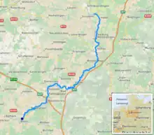 The Böhme leaves its source region southwest of the town of Schneverdingen and heads south, passing through the town of Soltau about 15 kilometres (9.3 mi) later. It then runs close to the northwestern boundary of the Bergen-Hohne Training Area and through the centres of Dorfmark and Bad Fallingbostel. Above Walsrode it forms the Böhme Knee (Böhmeknie), which strikes out to the northwest, before finally swinging southwest to reach the Aller a little below the small village of Böhme between Ahlden and Rethem.