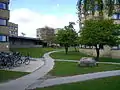 The complex consists of 7 four-story buildings with 14 single rooms on each floor. In addition there are four 1½ room apartments and one apartment with a kitchen. Individual buildings has community rooms and the overall complex has a larger, central community facility. The central facility has reception, mailboxes, offices, meeting rooms, fitness rooms, billiard and pool rooms, guest rooms, fireplace and banquet room.[3]