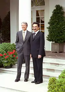 In July 1974, inter-communal violence in Cyprus once again flared up when pro-EOKA forces staged a coup against president Makarios. Ecevit went to London to met with British officials, as the UK is also a guarantor state of Cyprus, but a common policy for the situation in Cyprus was not found. Ecevit decided to militarily intervene and invaded Cyprus, for which he is nicknamed the 'Conqueror of Cyprus' (Turkish: Kıbrıs Fatihi).[24] This resulted in an arms embargo by the United States on Turkey which lasted for three years.[25]