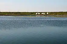 Büyükçekmece Dam was built to supply residential water to Istanbul. The construction started in 1983, and the dam was completed in 1988.[1] Water supply from the dam's reservoir went into service in 1989.[2] It is located in Büyükçekmece district on the European part of Istanbul on the Lake Büyükçekmece,[1] which is formed by disconnecting the stream Sarısu's outflow to the Marmara Sea.[2] It is an earth-fill embarkment dam of 13 m (43 ft) height.[1] The dam's catchment area is 620 km2 (240 sq mi).[2] The reservoir has a capacity of 162 hm3 (5.7×109 cu ft) covering a surface of 43 km2 (17 sq mi) at normal pool.[1] The reservoir water is sanitated before it is supplied to the households. Annual water supply capacity of the dam is 100,000,000 m3 (3.5×109 cu ft).[2]