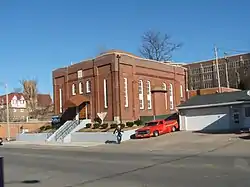 In the early 1900s, many people called the area around the 300, 400 and 500 blocks of Main Street "Jew Town" because the stores in the neighborhood were mostly owned by Jewish families, many of whom lived above their stores.[9] The B'nai Jacob congregation was organized in 1898. In 1907, the congregation was located at 404 E. Main St., and had 15 members out of an estimated Jewish population of 150. The Hebrew school had 15 pupils and met once per week. By 1919, the Jewish population of Ottumwa had risen to 412 and the congregation had moved one block into the current building. The school still only had one teacher on staff, but there were 21 pupils and the school met daily.[5][10] The B'nai Jacob congregation numbered around 250 in the 1930s and 1940s. The synagogue affiliated with the Conservative movement in the 1950s.