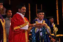 Belle Monappa Hegde (born 18 August 1938) is a cardiologist, professor of medicine, and author. He was the Vice Chancellor of Manipal Academy of Higher Education from 1999 to 2003.[3] He was awarded Padma Bhushan in 2010 and Padma Vibhushan in 2021.[3] He has supported theories of homeopathy[4] and quantum healing.[5]
