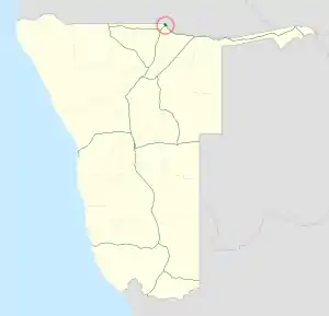 The B11 is a national road in Namibia, running since 2013[1] from the B10 near Nkurenkuru to Katwitwi. The road, together with the B10 and B15 from Tsumeb, cost 910 million NAD. Construction has been carried out in three phases since 2009 by the Namibian Roads Contractor Company (RCC) and the China Henan International Cooperation Group.