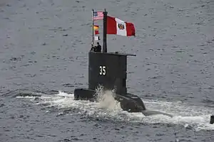 BAP Islay (SS-35) is one of two Type 209/1100 submarines ordered by the Peruvian Navy on 24 June 1970. She was built by the German shipbuilder Howaldtswerke Deutsche Werft AG at its shipyard in Kiel. She is named after the Battle of Islay which took place between naval forces of Peru and Chile on 12 January 1838. Following sea trials in the North Sea, she arrived to its homeport of Callao in 1974. After almost a decade in service she was overhauled in Kiel in 1983 for further use.