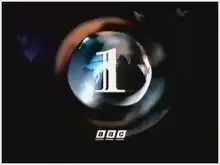The ident consisted of a figure "1" inside a rotating transparent globe surrounded by a swirling smoky atmosphere above the BBC's corporate logo: the bold italic letters B B C within three rhomboids, above blue red and green flashes. The idents were created by filming a physical globe, but used CGI effects to give it its smokey look. The ident had no soundtrack and was played off a Sony Laserdisc implementation, Sony CRVdisc.[3] Upon first impressions, the ident does not appear like a globe, as the smoky CGI effects hide and disfigure the continents. However, land masses can be seen in the globe and their shadows can be seen on the background of the ident.[4]