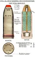 ShellLyddite : 122 lb 9 oz (55.59 kg),[2] later 100 lb (45.36 kg);[3]