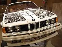 In addition to the work commissioned by BMW, other artists have created unofficial BMW art cars. In 1979 racing driver Peter Gregg purchased a BMW M1 Procar and commissioned his friend Frank Stella to paint it for him; this car is the only BMW painted by an artist who was also part of BMW's own Art Car program.[16] and was sold from the Guggenheim Museum to a BMW dealer in Long Island, New York in 2011.[17] The car is part of Stella's "Polar Coordinates" series, created to commemorate Stella's friend Ronnie Peterson who had died in a racing incident at Monza in 1978.[16][18] In 1987 Keith Haring painted a red BMW Z1 at Hans Mayer Gallery, Düsseldorf.[19] In 1996 Artist Dennis Simon was commissioned to create a BMW Motorsport tribute on the flanks of a 1965 BMW 1800 Ti/SA for BMW's 80th birthday at the Monterey Historics in Laguna Seca, CA. In 2007, Portland’s Museum of Contemporary Craft commissioned artist Tom Cramer to paint a 1977 BMW 320i for their grand opening at the DeSoto Building.[20][21] In 2016, the Cultural Council of Greater Jacksonville commissioned artist Christie Chandler to paint a BMW X6 for their annual awards gala at TPC Sawgrass.[22][23]