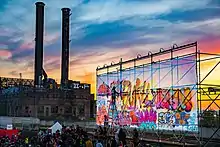 BUKU Music + Art Project is a New Orleans based two-day music and arts festival founded in 2012 by Winter Circle Productions and held annually at Mardi Gras World.[1][2] BUKU considers itself to be a boutique event that delivers a big festival punch without compromising its house-party vibe. BUKU seeks to serve as a platform for the intersection of pop culture and the New Orleans underground arts community, and combines international musicians with local food vendors, local visual artists, and various surprise pop-up street performers throughout the site. BUKU's musical tastes have been a relatively even mix of electronic dance music, hip hop music, and indie rock featuring past performances by Bassnectar, Lana Del Rey, Kid Cudi, Migos, MGMT, Travis Scott, A$AP Rocky, Illenium, Nas, Excision, Major Lazer, Alt-J, TV on the Radio, A Day to Remember, REZZ, Flosstradamus, deadmau5, Kendrick Lamar, Porter Robinson, Pretty Lights, RL Grime, Seth Troxler, Future, Ellie Goulding and dozens of others.[3][4][5]