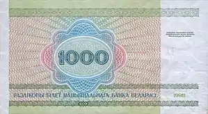 Rbls 1,000 | 110 × 60 mm | Large image of the number 1,000 | 16 September 1998 | |||||