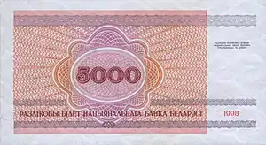 Rbls 5,000 | 110 × 60 mm | Large image of the number 5,000 | 16 September 1998 | |||||
