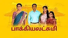 Baakiyalakshmi is an Indian Tamil series on Star Vijay.[1] This show is an official remake of Star Jalsha series Sreemoyee.[2][3] It is also available on Disney+ Hotstar.[4] It was scheduled to premiere on 16 March 2020, but due to COVID-19 lock down, it was premiered on 27 July 2020. It stars K.S. Suchitra Shetty in the titular role with Reshma Pasupuleti, Sathish Kumar and Ranjith in the other prominent roles.