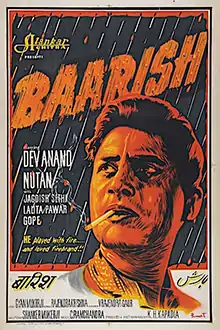 Baarish (lit. 'Rain') is a 1957 Indian Hindi-language crime drama film with Dev Anand and Nutan in the lead roles. Based on the American film On the Waterfront, it is the directorial debut of Shankar Mukherjee.[1][2]