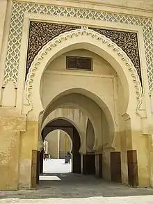 Bab Dekkakin or Bab Dekakene[1] (Arabic: باب الدكاكين, romanized: bab ad-dekakin, lit. 'gate of the benches') is a fortified and ceremonial gate in Fes, Morocco. The gate is situated between the Old Mechouar (or Vieux Méchouar) and the New Mechouar (or Nouveau Méchouar) on the northern edge of Fes el-Jdid.