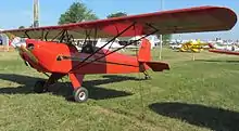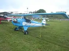Later models utilized various engines -- facilitated by the removeable motor mount -- including the 45-hp Szekeley SR-3, 40-hp Salmson AD9, 35-hp Continental A-40, or 30-hp Heath B4.[3] A variety of aircraft powerplants may be used, typically in the 65-100 hp (50-75 kW) range.[8] Most versions flying today use the Continental A65 aircraft engine.[3] Examples have been built using 70 hp Corvair engines.[8]