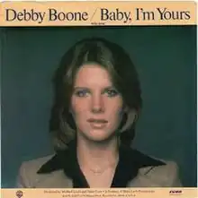 The song was issued as a single in March 1978 with "God Knows", a track from Boone's Midstream album, as its flip side. Peter Noone, the co-writer of "God Knows", has alleged "['God Knows'] was originally intended to be the A-side. But the record company chickened out and went with [the] cover of 'Baby I'm Yours' instead."[22] Boone's "Baby I'm Yours" peaked at #22 C&W while on the Hot 100 the track peaked at #74 and on the Easy Listening it reached #14, both in a tandem ranking with "God Knows".