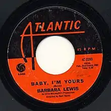 Barbara Lewis first recorded "Baby I'm Yours" in a January 8, 1965 Atlantic Recording Studios (NYC) session directed by Bert Berns with the producer credit assigned to Lewis's manager Ollie McLaughlin. The session for the track featured Teacho Wiltshire conducting his orchestra, whose personnel included Clark Terry and Dud Bascomb (trumpets), Jimmy Cleveland and Tony Studd (trombones), Frank Haywood Henry (baritone sax), Charlie Brown (tenor sax), Paul Griffin (piano), Bill Suyker (guitar), Jimmy Lewis (bass), Gary Chester (drums), and Artie Butler (percussion/ handclaps); the harmony background vocals on the track were provided by the song's composer, Van McCoy, singing with Kendra Spotswood[1]
