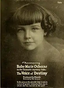Osborne was signed to a lucrative contract with Balboa Films (and working with director Henry King and writer Clara Beranger), by the age of five she was starring in silent films, including her best-remembered movie, Little Mary Sunshine, from 1916,[3] one of her few films that survive on celluloid. Some of her other films are Maid of the Wild (1915), Sunshine and Gold (1917), What Baby Forgot (1917), Daddy's Girl (1918), The Locked Heart (1918), Winning Grandma (1918), The Sawdust Doll (1919), and Daddy Number Two (1919).