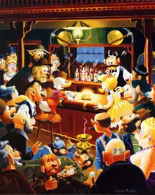 In its first printing, the story was cut from 32 to 27 pages, since the editors did not believe the bar fight and abduction scenes were appropriate for a Disney comic.[6] Barks later recalled, "I think they figured I should have had sense enough to know you couldn't get involved in fights in a barroom. It was quite a while afterwards before I found out why they cut it. I got a letter from the office, or was told on my next visit to the office, that I had violated a lot of their taboos and should have had sense enough to know it wouldn't work." Another of Western's concerns was that Scrooge kidnapped Goldie and made her work on his claim for a month, and that sequence was also cut from the published story.[7]