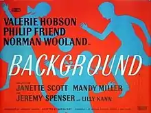 Background (U.S. Edge of Divorce) is a 1953 British domestic drama film dealing with the effects of divorce, directed by Daniel Birt and starring Valerie Hobson, Philip Friend and Norman Wooland.[2] It marked the film debut of Barbara Hicks. It was based on the 1950 play of the same title by Warren Chetham-Strode, who also wrote the screenplay for the film.[3] It was made at Southall Studios, with sets designed by the art director Michael Stringer. The film was produced by Group 3 Films and distributed by ABPC.