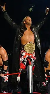 Ricky "The Dragon" Steamboat jumping toward Chris Jericho